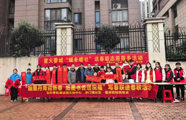 医学检验技术24-1班戚茜茜在霍邱县城关镇参加了由县委社会工作部、县文旅体局、城关镇、新店镇联合主办,县文化馆携手县书法家协会承办的星火蓼城“暖冬暖社”送春联志愿服务活动。活动现场,累计为社区居民现场赠送春联及福字900余副,让居民在墨香中感受传统文化魅力与新春暖意。