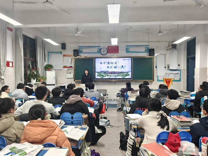 医检24-1班姚乐怡同学走近肥西县铭传高级中学,向学弟学妹们传递安理之声。她详细介绍了学校的办学历史、学科优势及校园文化,用生动的语言和丰富的图片,全方位展示了安徽理工大学的综合实力与独特魅力。同时,结合自身经历分享了宝贵的学习方法和备考经验,鼓励同学们锚定目标,努力拼搏,争取考取心仪的大学。
