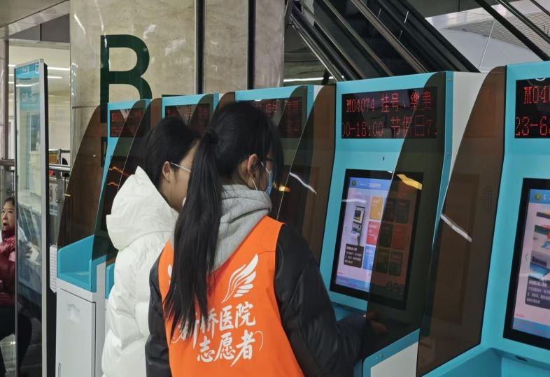 医学检验技术25-1班杨凤到重庆市新桥医院参加志愿服务,主要开展自助服务引导,协助患者通过自助设备完成挂号、缴费、报告查询与打印等操作,提升就诊效率;进行爱心助行服务,主动帮扶独自就医的老年人、行动不便或其他有需要的患者,陪同前往相应诊区或协助完成检查流程,传递人文关怀,展现了当代大学生良好的综合素质与精神风貌。