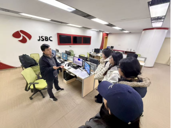 初来乍到遇上江苏两会,办公室里每个人都很忙,键盘敲得噼啪响,氛围甚至有些紧张,有一种电视剧《新闻女王》中SNK新闻制作部走进现实的既视感。那段时间,我不停地熟悉全媒体内容生产平台的后台操作与内容发布规范。一天,系里的老师也来到台里,带着我们参观指挥中心、演播室、导播间、配音间、编辑区,详细介绍全媒体新闻生产流程,还邀请一线编辑记者同我们对话交流。大家边走边记,生怕漏掉“小课”知识点。