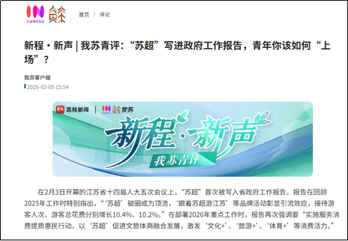 学会撰写时政评论是这次实习的另一个大收获。时值江苏开启“两会时间”,栏目组策划推出青年视角的系列评论。起初我无从下手,急得像热锅上的蚂蚁。好在有带教老师的鼓励和引导,急性子的我才开始想办法,静下心来逐字逐句研读政府工作报告,每天至少阅读20篇不同媒体的相关新闻,从中寻觅评论选题切口。最终产出多篇评论,其中《“苏超”写进政府工作报告,青年你该如何“上场”?》收获网信部门全网推送。成就感之余,我也更明白课堂上老师们常说的“真听真看真感受”“努力的每一步都算数”。未来,我会带着这份经历,以更认真的态度学习专业,向着优秀新闻传媒人的目标踏实前行。