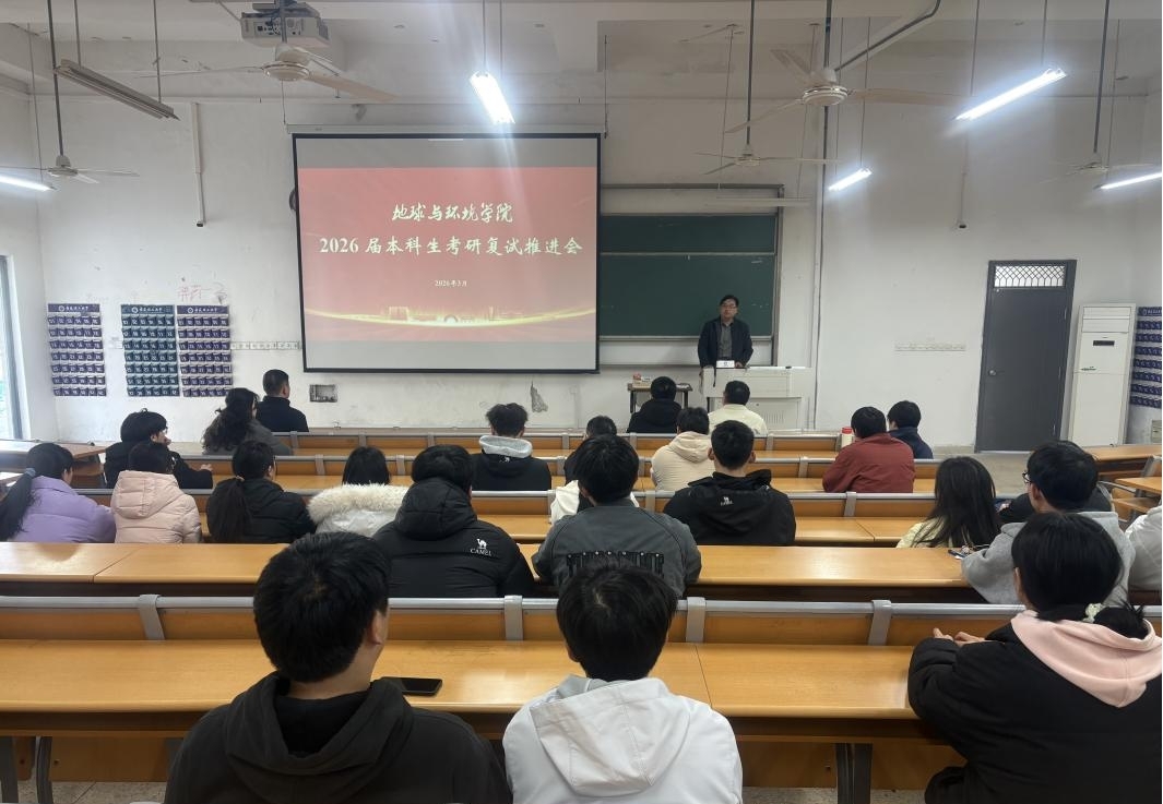 为切实做好2026届毕业生考研复试、调剂指导工作,3月12日下午,地球与环境学院在天工105教室召开2026届本科生考研复试推进会。学院领导、各系主任、毕业班辅导员及初试达线本科生参会,会议由学院党委副书记贾伟主持。
