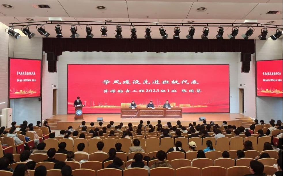 会上,副院长吴海波宣读了《关于表彰地球与环境学院2025年度学风建设先进集体和个人的决定》。资勘2023-1班张国誉等学生代表依次发言,涵盖先进班级、先进个人、文明寝室、优秀毕业生及学科竞赛获奖团队等类别。他们结合自身经历,围绕班级学风引领、寝室氛围营造、学习习惯养成等方面分享感悟,展现了地环学子勤学善思、团结奋进的良好风貌。