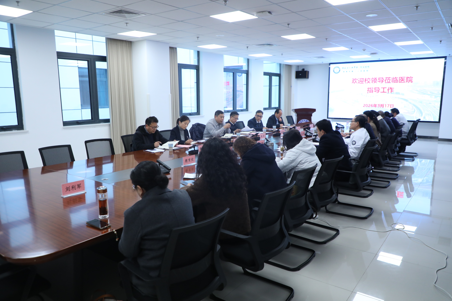 座谈期间,双方就推动工作进行深入探讨,随同调研的各职能部门负责人全面从政策制度、平台建设、质量提升、研究生培养、队伍建设、科研项目申报等方面就第一附属医院发展需求提出意见与建议。