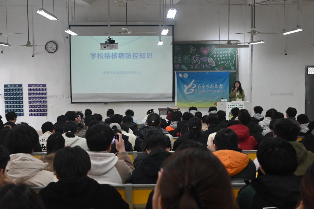 为普及结核病防治知识,增强师生防护意识,3月22日,医学院在天工楼103教室开展以“全面行动防结核全民守护促健康”为主题的校园结核病防控知识讲座。本次讲座邀请淮南市疾病预防控制中心专家徐诗韵老师主讲,院团委负责人主持,近200余名学生参与活动。