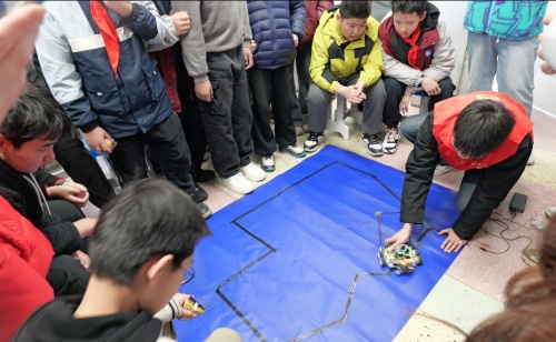 在安徽理工大学附属小学,志愿者们以“榜样的力量”为主题,通过多媒体展示、互动问答讲述雷锋事迹,更以亲手制作的智能车灵活穿梭的演示,向小朋友具象化地阐述“干一行爱一行”的螺丝钉精神,让孩子们直观感受敬业专注的内涵;孩子们则拿起画笔,以“扶老奶奶过马路”“雨中送伞”等画面,画出心中的雷锋形象。在安徽师范大学附属淮南高新学校,志愿者们用情景剧还原雷锋助人为乐的经典场景,最后全场共同唱响《学习雷锋好榜样》,歌声回荡校园。