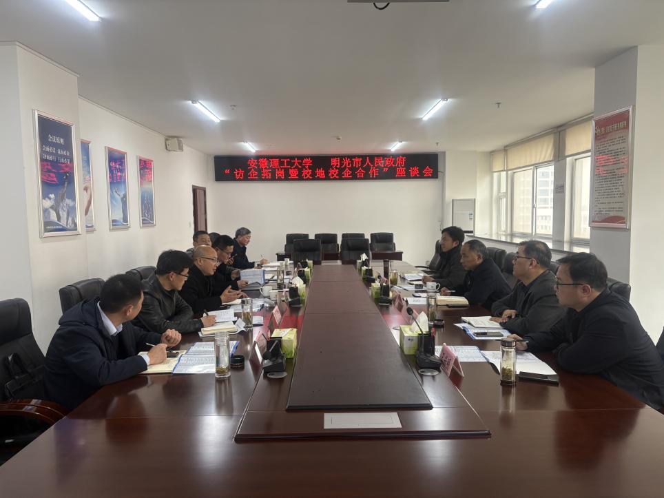 座谈会上,张平松与明光市有关领导及相关部门负责人深入交流,全面了解明光市四大园区及企业基本情况、招才引智政策和就业工作开展情况。他指出,学校坚持产教深度融合,推动学科、专业、产业一体化发展,希望以此次走访为契机,与明光市建立更加紧密的合作关系。他还介绍了学校的历史沿革、办学特色、学科专业优势、人才培养成果及毕业生就业情况,表示学校将充分发挥人才和科研优势,为地方经济社会发展提供有力支撑。