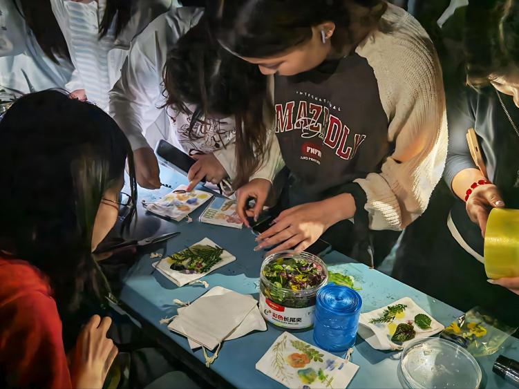 本次活动紧扣“熄灯一小时,环保不止步”主题,设置五大板块同步开展。主题草地音乐会上,校园乐队与歌手轮番登台,在静谧夜色中演绎青春旋律,将现场氛围推向高潮;在“黏土绘地球”手工区,同学们用轻质黏土捏塑地球造型,融入垃圾分类、濒危动物等元素,表达对生态保护的独特理解;在3D立体拼图挑战赛前,参与者争分夺秒完成森林、海洋主题拼图,前50名完赛者获赠“纸树开花”环保礼品;在植物拓染体验区,师生以锤为笔、以叶为墨,将植物纹理拓印于布袋之上,创作出兼具非遗韵味与环保理念的实用作品;在环保知识竞答赛现场,参与者随机抽题、限时作答,在竞答中巩固垃圾分类、节能减排等知识,赢取绿植与环保文创奖品。