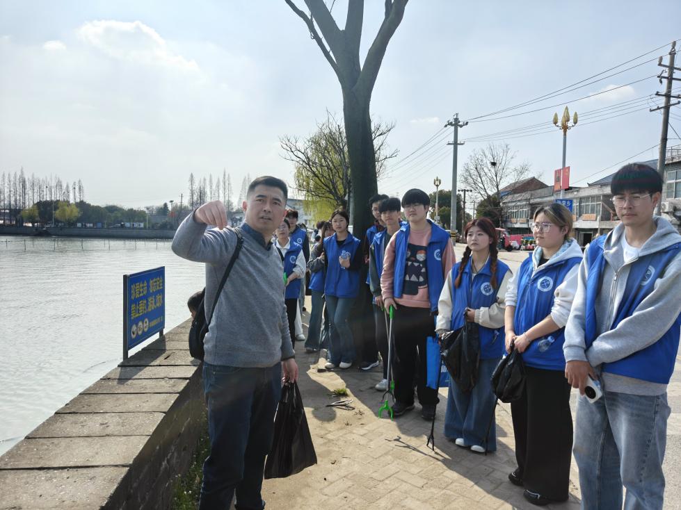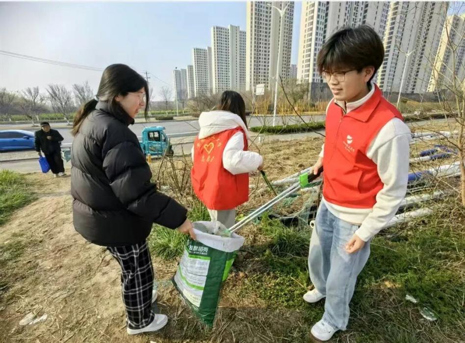 志愿者在捡拾垃圾(照片由学院团委提供)