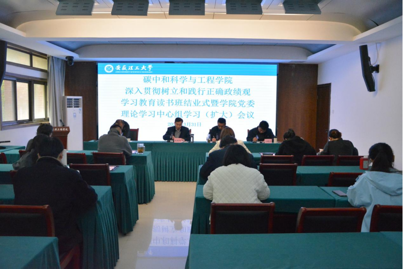 3月31日,碳中和科学与工程学院深入贯彻树立和践行正确政绩观学习教育读书班结业式暨学院党委理论学习中心组学习(扩大)会议在明德楼第二会议室召开。学院党委书记武成利主持会议并作总结讲话,学院党委领导班子、各支部支委、各部门负责人参加会议。
