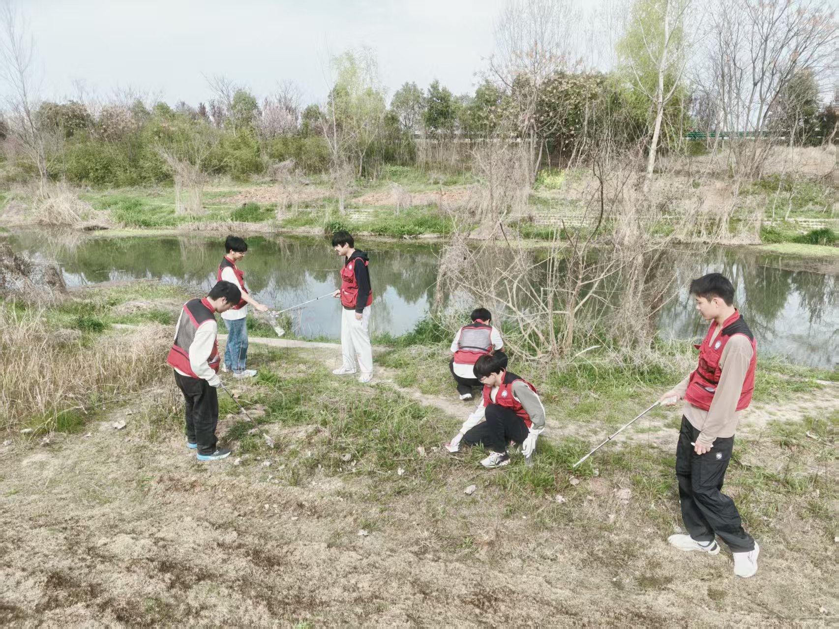 在板桥河畔,“知行青春,安理卫你”志愿团负责人梁美琪、苏乐同学讲解了结核病传播途径、预防措施等相关知识;“青春卫河·知行小青”志愿服务项目负责人储善恩同学说明了河道生态保护志愿行动的重要意义;2025级安全一班团支书陈博文同学从青年担当的角度,号召全体志愿者以雷锋精神为指引,积极服务他人、奉献社会。