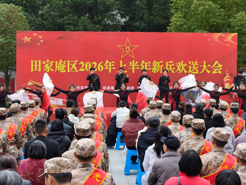 3月16日,学院组织学生参与田家庵区2026年上半年新兵欢送大会志愿文艺演出。同学们精心编排红歌合唱、舞剑、舞扇、朗诵等节目,以饱满精神完成表演,并主动承担现场服务保障工作。