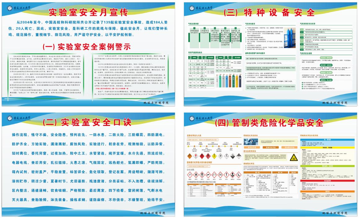 近期,为强化实验室安全管理,普及安全知识,筑牢安全防线,营造安全有序的实验环境,地球与环境学院多举措开展实验室安全专项检查、教育和宣传工作。