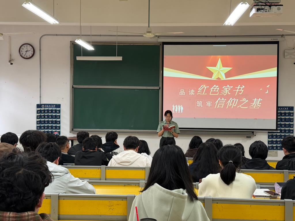 红色读书分享会上,郝艳以《红色家书》为纽带,带领同学们与革命先辈开展心灵对话。她节选书中经典片段,饱含深情地解读其中的忠诚信仰与家国情怀,讲述夏明翰、赵一曼等先烈的感人壮举,传递红色初心。