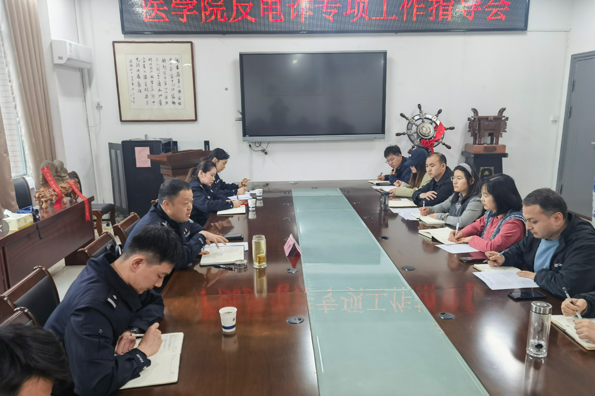 4月8日,高新技术产业开发区公安分局副局长张健一行来学院现场指导反电诈工作。学院党委副书记周静对分局长期以来给予学院校园反诈工作的支持和指导表示诚挚谢意。会议根据医学教育规律,针对大四、大五在校外见习和实习学生的反电诈宣教工作进行了热烈的探讨,就进一步加强与公安分局的沟通协作,畅通信息共享渠道,完善校警联动机制达成了共识,共同做好校园反诈工作,形成校警同心、协同发力的反诈工作格局。