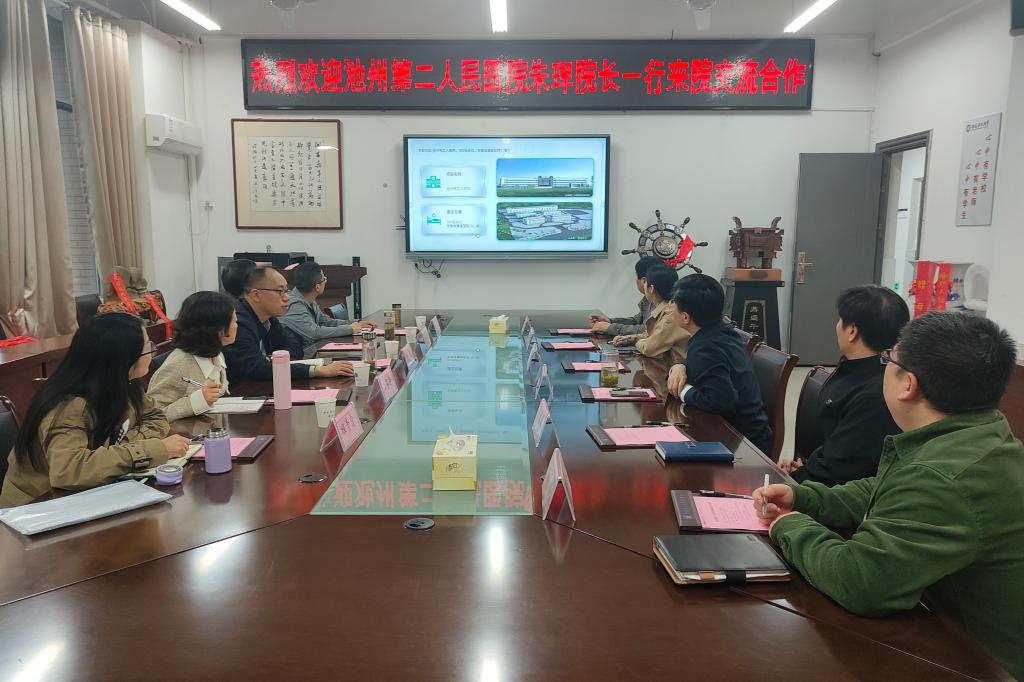 为凝聚校友力量,促进资源的共享与互通,4月13日下午,池州市第二人民医院院长朱珲等一行5人来医学院交流工作。交流座谈会在崇仁楼C114会议室召开。学院党委书记张可佳,院长胡东参加了会议。
