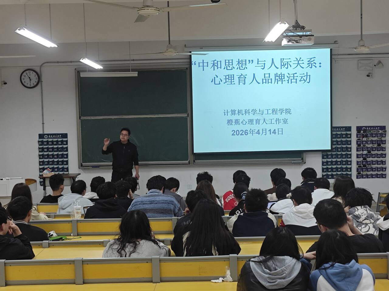 4月14日,计算机科学与工程学院举办了“中和思想与人际关系”心理育人品牌活动。国家三级心理咨询师、计算机科学与工程学院橙蕉心理育人工作室负责人担任主讲,学院40余名学生代表参加活动。