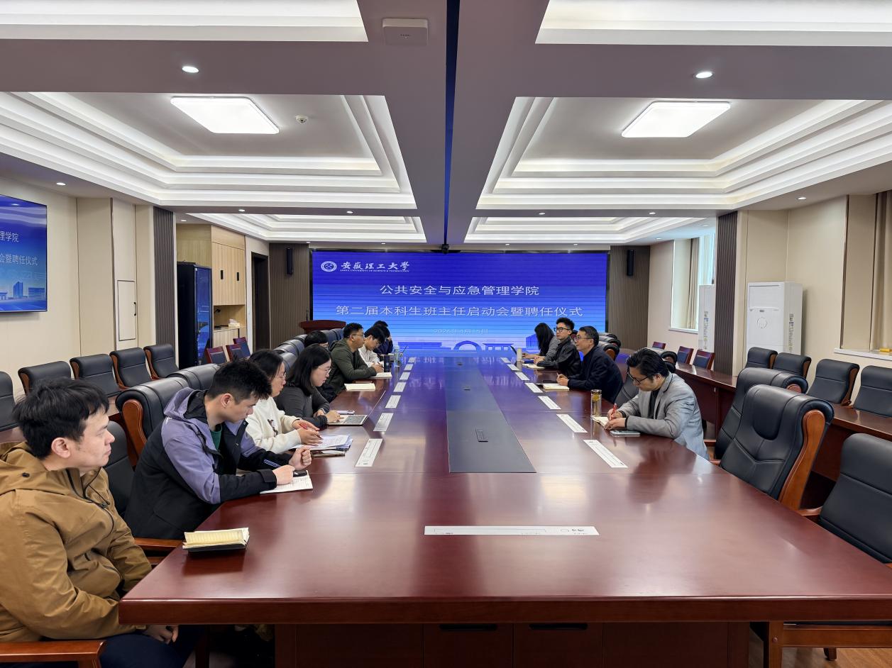 为进一步加强本科生班主任队伍建设,深化“三全育人”综合改革,4月15日,公共安全与应急管理学院于产教融合楼402会议室举行第二届本科生班主任启动会暨聘任仪式。学院党委副书记翟富林、全体辅导员及新聘任的博士班主任参加会议。
