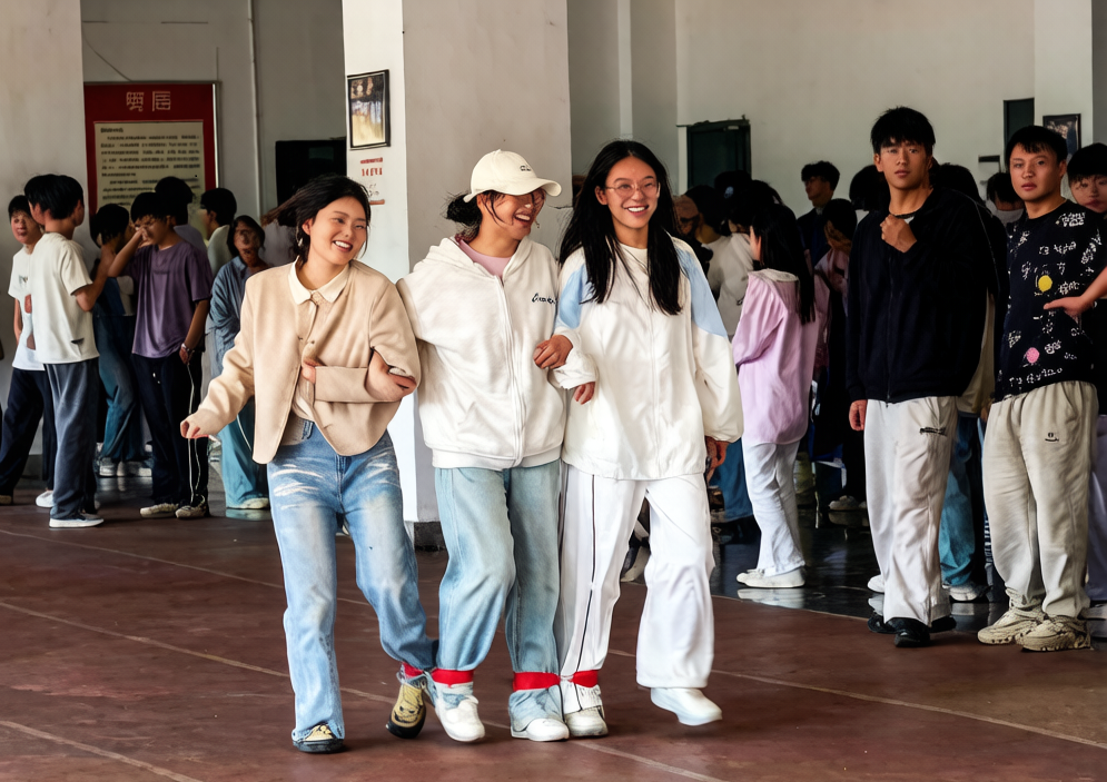 素质拓展环节则充满了欢声笑语与青春活力,活动设置3人捆腿跑、呼啦圈传递等趣味竞技项目,以团队协作形式开展,充分考验同学们的默契配合与协调能力。3人捆腿跑项目中,大家喊着整齐的口号,步伐一致、协同向前;呼啦圈传递项目中,同学们配合默契,在接力竞速中展现昂扬向上的青春风采。