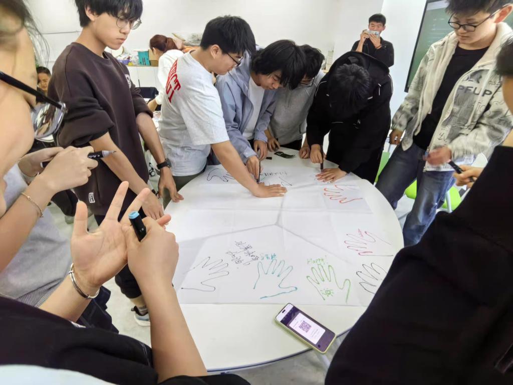 系列活动尾声,学院组织全体学子开展手掌印群像留痕集体创作。同学们在创意画布上按下五彩掌印,写下青春心愿与美好期许,斑斓掌印汇聚成青春暖心群像,凝聚同窗互助、团结友爱的温暖力量。
