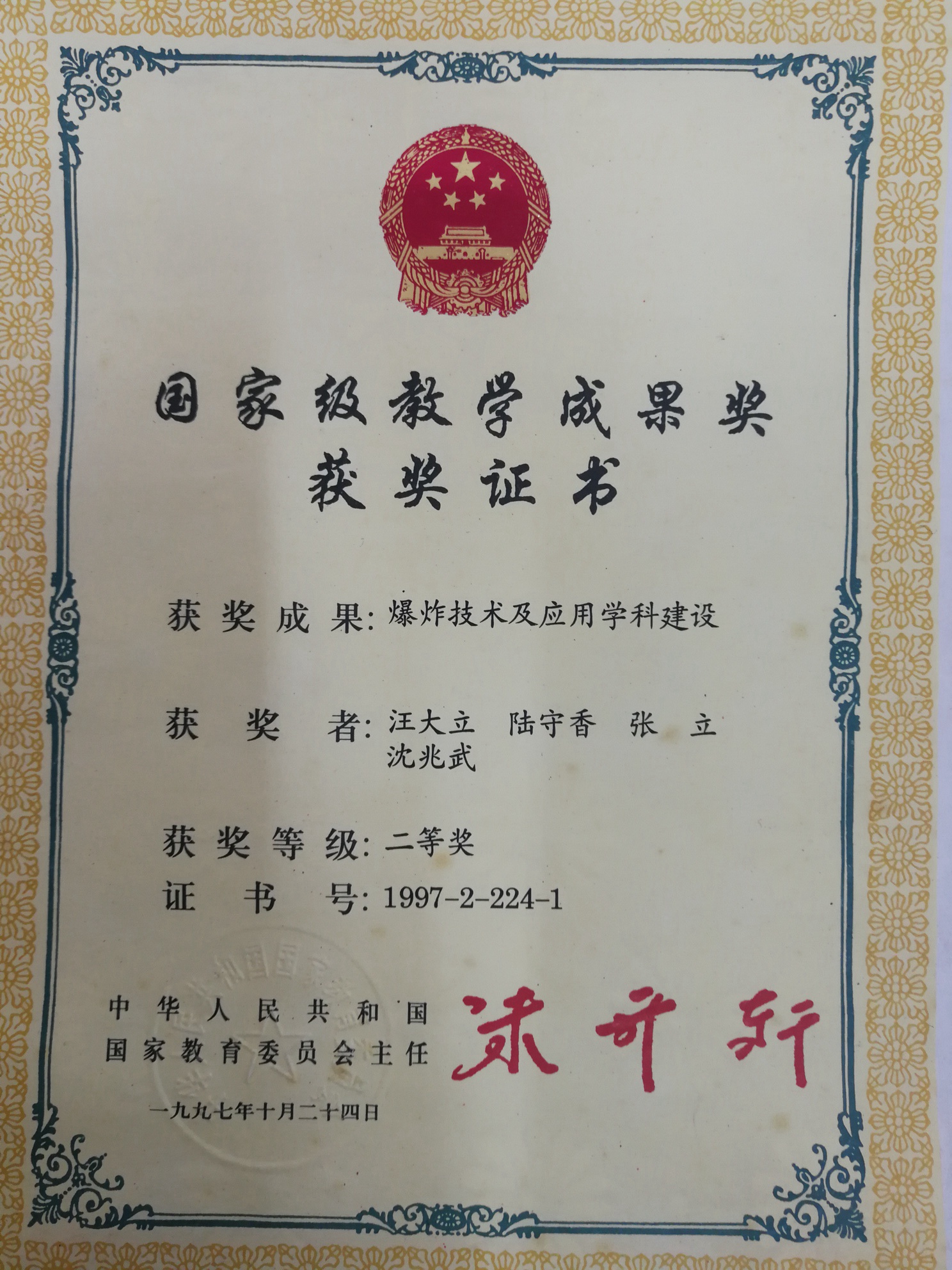 回想起当年在“火工”专业奋斗的点点滴滴,从专程赴原煤炭部筹措经费到培养出一大批爆破专业卓越人才,从跟踪国内外先进实验技术设备,到在“火工”专业创始人张金城教授指导下带领团队自主设计建设国内第一座10克单质炸药水下爆破水池和自动化测试系统,从自学专业知识、自编教学讲义到编写专业教材、发表高水平专著,从获批原煤炭部重点学科、取得硕士学位授予权到爆炸技术及应用学科获原国家教委“教学成果二等奖”,从筚路蓝缕、艰苦创业到强基固本、打响品牌,每一个细节、每一次进步都深深地印在了汪大立同志的脑海中,都记录了他们那一代“火工人”奋斗与创新的足迹。关心专业发展已经成为他的思想与行动自觉!