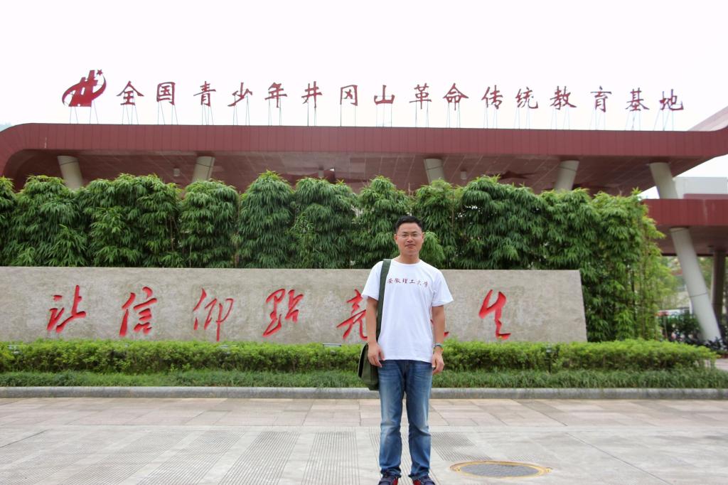 第一次见到杨志华老师是在一张照片上,杨老师站在井冈山革命传统教育基地前面,身着牛仔裤白衬衫,笑容温和,不像是老师,更像是刚毕业的大学生,周身洋溢着阳光和热情。