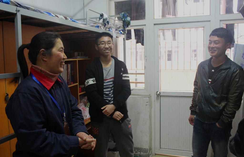 前些年,公寓楼迎来了一名只有15岁大一新生,他不擅长和别人交流,显得比较孤独,王克艳看在眼里,便经常主动拉他坐在一起和他聊聊天,劝导他要多和别人交流,给他鼓励。有时候,学院领导去学生寝室探望学生时,有位学生没能够意识到见到领导的时候要主动问好,事后,她便教育他要主动地向别人问好,这样才会有礼貌,在以后踏入社会之后才能够更好地做人做事。