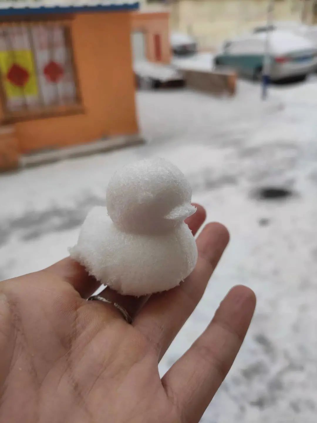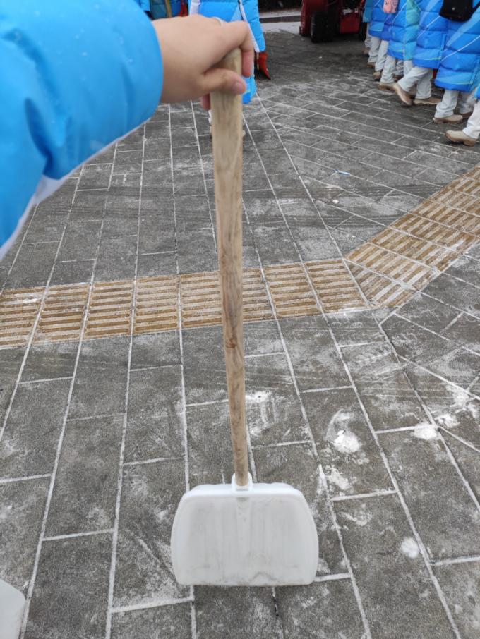 2月13日,志愿工作行将结束时,下了很大的雪,志愿者们自发展开道路清洁工作,一百多位志愿者,身着统一的蓝白相间的志愿者服装,羽绒服纯洁的瑞雪白与周身雪地融为一色,明亮的天霁蓝与头顶蓝天遥相呼应,伙伴们一齐拿着各式清扫工具扫除站岗路面附近人行道的积雪。忙碌间隙,有的志愿者堆起了雪人,有的打雪仗。雪花纷纷,白茫茫一片的雪地里,宋恩周拿起工具,自顾自画起了一个大大的章鱼哥的简笔画,三条抬头纹,两双椭圆的眼睛,长长的鼻子,鼓起的腮帮,怨怼又可爱。