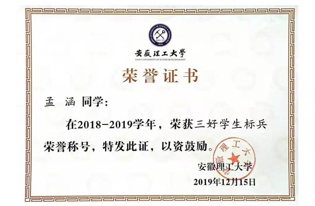 当被问到对未来有什么想法时,孟涵说:“大学即将结束,我真切地体会到大学并不仅仅是学习知识,更是学习如何学习,一定要培养良好的学习习惯。从刚步入学校的萌新到现在即将迈上新的学习征程,曾经也仰望过无数的风云人物,也对未来产生过恐惧和困惑,但因为对专业的追求,让我始终有着明确的目标和方向,在各种比赛中锻炼自己,提高自己,将未来掌握在自己手中。今后我会用更高的标准来要求自己,将所学的知识运用于实际,成为新时代的追梦者。”