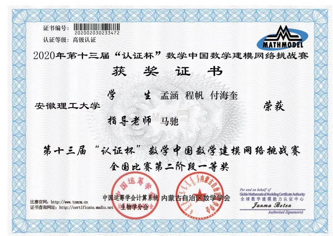 孟涵积极参加各类学科竞赛,在大一时她就开始着手了解各类比赛信息,她会在学院的通知群内翻看往年的比赛信息,咨询参加过学科竞赛的高年级同学。大二时,她成为学院创新社部长,负责一些比赛赛事的组织、宣传和布置,这也为她参加各种比赛竞赛打下了基础。2020年4月到8月,孟涵和另两位同学组队参加第十三届“认证杯”数学中国数学建模网络挑战赛,参赛主题为新冠肺炎疫情传播速度分析,当时因为无法返校,孟涵只能在家中线上参赛,竞赛正好又和期末考试重叠。团队成员只能复习之余准备比赛,因为无法线下见面,交流讨论也只能在线上,带来了很多不便。“我们三个人制定了详细的规划,每个人都有各自分工,我主要是负责收集每日新冠肺炎新增数据,汇总到一张大表中来,用于之后的建模分析。在比赛建模的三天里,团队成员共同商定讨论,不分昼夜,不做完不睡觉,赶在最后一天把论文写完。” 最终,团队获得挑战赛第一阶段三等奖、第二阶段一等奖。比赛背后的汗水和努力,每一盏黑夜里亮着的台灯都曾是见证。“一次参赛,终生受益。”孟涵如是说。她收获的不仅仅是知识,更是面对困难不退缩的勇气,还有与队友们一起攻坚克难结下的深厚友谊。“夜深了,我们边熬夜边讨论问题,那一段因努力而闪闪发光的日子令我非常怀念。”
