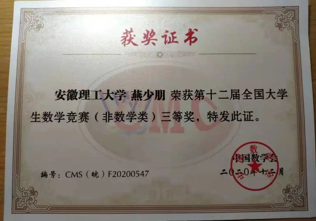 赛后他们对参赛过程进行了总结,燕少朋作为队长坚信只要思想上有了高度的统一,合作中的摩擦也会减少。所以在遇到意见不统一的情况时,燕少朋会组织每个人都发表一下自己的观点然后再择优选择,凡事以小组为先。在这之后,他们三个人一起征战了5场比赛:2020年4月获“认证杯”数学中国建模网络挑战赛第一阶段、第二阶段一等奖;2020年5月获五一数学建模竞赛一等奖;2020年10月获全国大学生数学建模竞赛安徽赛区一等奖;2020年11月获全国大学生数学建模竞赛全国二等奖;2020年12月获全国大学生数学竞赛(非数学类)安徽赛区三等奖;2021年4月获美国大学生数学建模竞赛二等奖。让燕少朋印象最深的是2020年11月参加全国大学生数学建模竞赛,这次比赛他们三人基于前几次参加竞赛的经验,总结下来的一整套完整的参赛流程:在比赛前把比赛通用的模板做出来然后进行修改,待比赛题目出来后,三个人首先不去交流,而是先去查阅资料进行自由选题,然后在三人群里面投票选出最终的题目。之后才开始讨论题目大致解决的思路和方向,讨论中三人还把参赛模型中所涉及的公式和思维方式在纸上写出来。然后把方案逐步细化让每个人对整篇论文有系统性的认识,最后再根据每个人的擅长领域分配任务。这次比赛燕少朋和队友的选题是《基于机理模型的炉温曲线优化问题的研究》,但在最后一天遍历优化算法的程序还没有改出来,更糟糕的是炉温曲线模型的一个关键参数也出现了问题:模型算出来的结果出现了负值,这与在实验中的结果完全不同而且脱离了实际情况。时间紧迫,燕少朋跟队友在自习室连夜修改。程序的连续报错让他很头疼,但是因为三人已经有了默契,“当时心态也没怎么崩溃,只想着怎么去把问题解决。而且当你真正投入进去之后,就不会因为压力而感觉到难受,反而会享受过程。”为了解决这些问题,燕少朋和队友在自习室一夜未眠,花了将近40个小时的时间让程序最终在限定的时间内回归正常,最终他们成功取得了全国二等奖的好成绩。