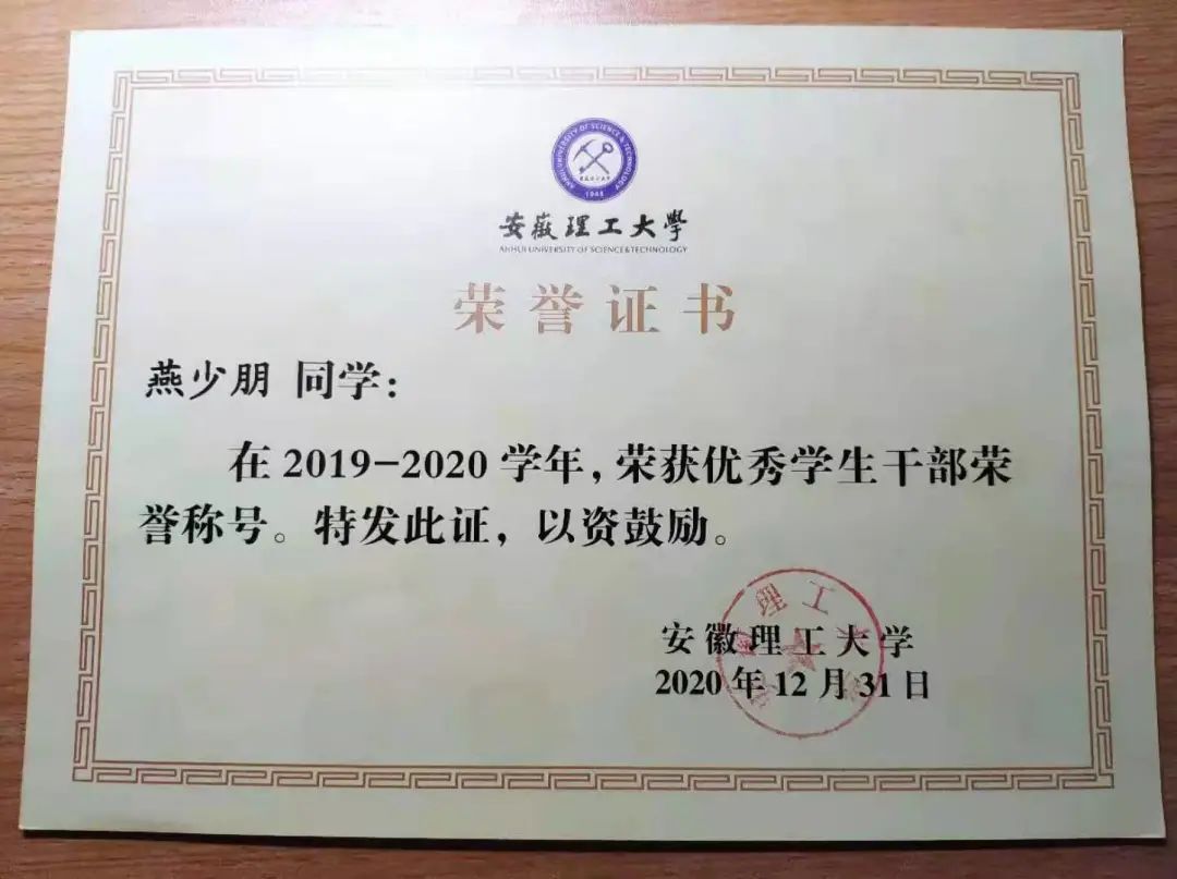 努力就会有收获。刚进入大学的燕少朋和很多人一样对大学生涯的没有明确的定位。于是他积极参加各种活动丰富课余生活,一次偶然的经历,他听到了中国科学技术大学张国庆老师讲理科生的个人发展规划的讲座,“张老师的讲座让我醍醐灌顶,明白了规划自己的重要性,结束之后我加了老师的微信,还经常看老师朋友圈里分享的各种文章。”到了学期末,成绩优异的他不仅取得了专业第一的好成绩,同时第二课堂成绩也是全班第一,这让他也得以有机会参加线上入党积极分子培训班。“网上培训课程有一个专题讲如何发展自己,同时还谈到了在日常生活中善于发现哲学、运用哲学的思想来处理日常生活,这让我非常受启发。”这堂课也让燕少朋坚定了将规划贯穿学习生活的意志。