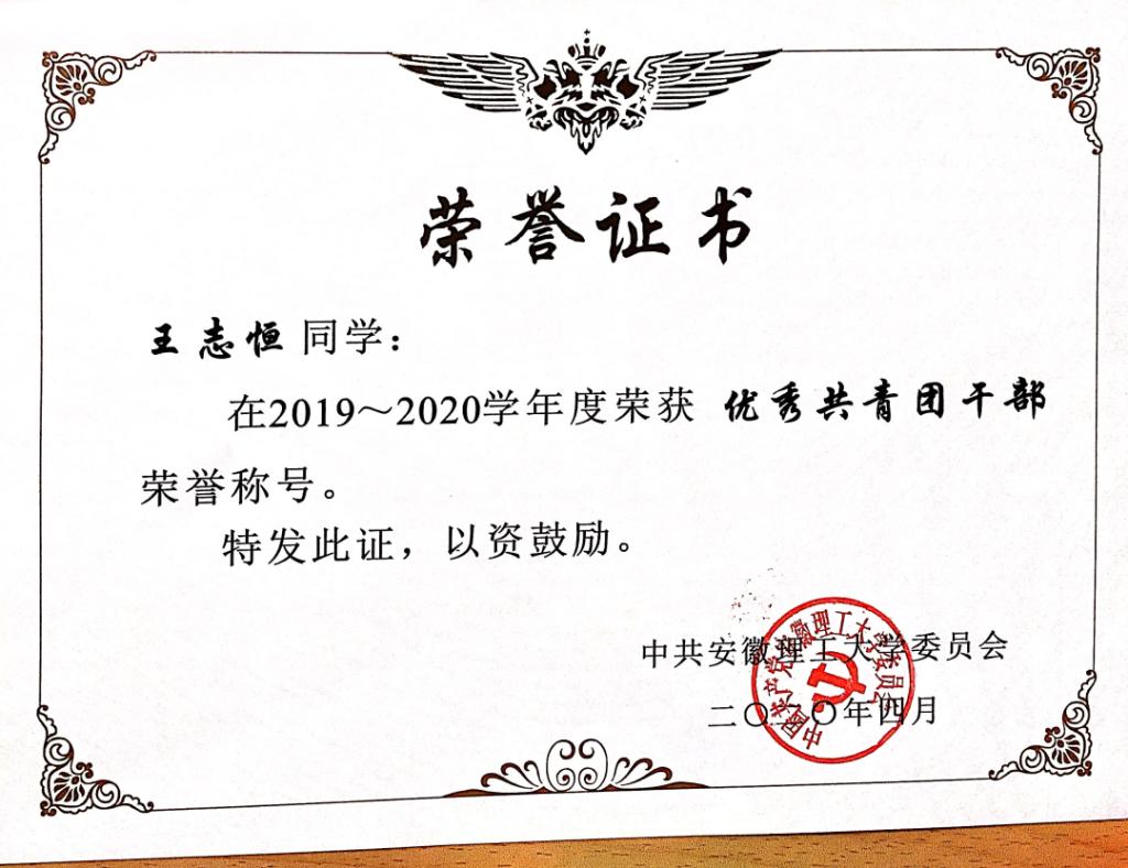中共党员,地球与环境学院2018级勘查技术与工程专业学生,曾获校三好学生、优秀学生干部、优秀学生奖学金三等奖、优秀共青团员、安徽理工大学地球物理知识竞赛三等奖、安徽理工大学地质技能大赛二等奖、四史知识竞赛优秀奖等。已考研至中国地质大学(北京)资源与环境专业攻读硕士研究生。