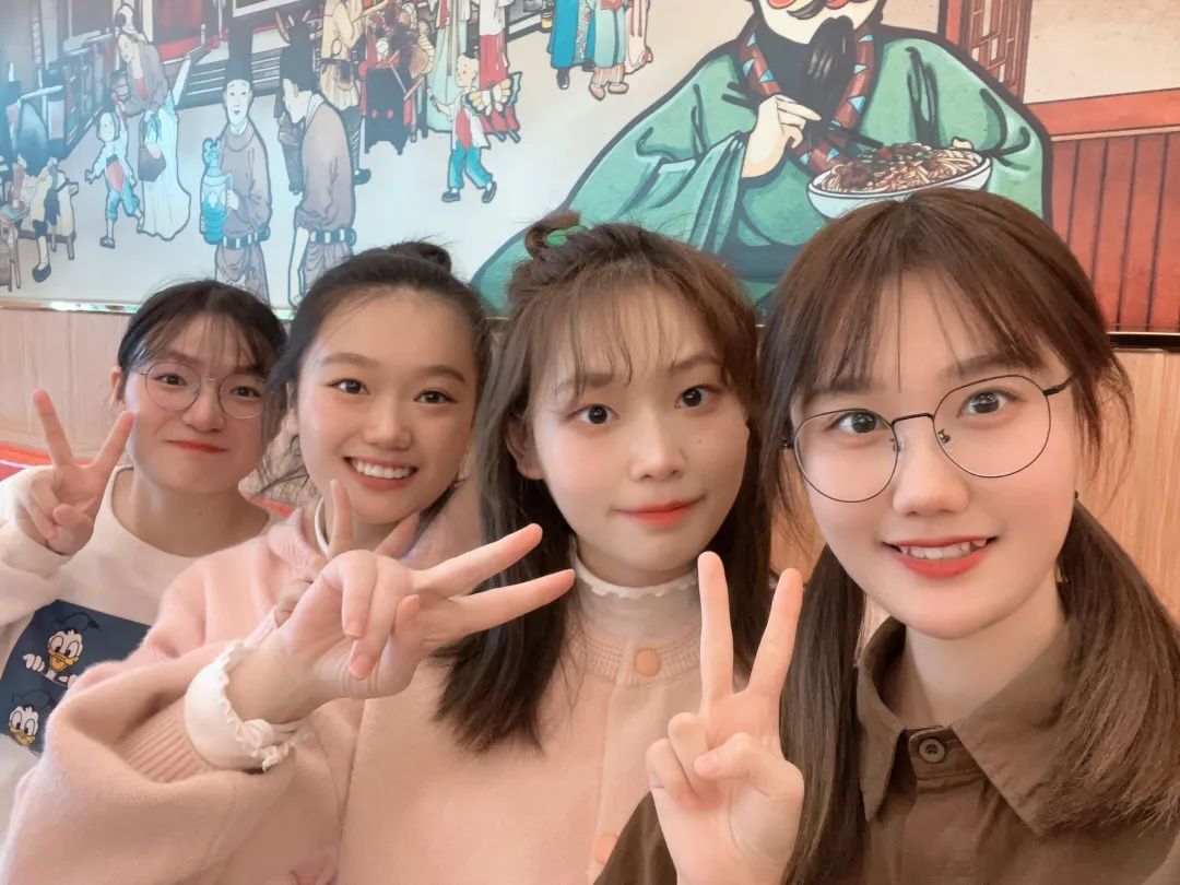 学习之余,四个女孩也会相约一起团建,在学校之外抛开课业的烦恼,吃火锅,喝奶茶,逛街是她们最常做的事情。在团建的过程中相互倾诉学习和生活上的压力,互相帮助对方解决小问题,在一次次的团建相处中,四个女孩成为了彼此的“家人”,因为一起走过这条路,所以更加理解对方的感受,也能更好的帮助对方,这是四个女孩一致的想法。