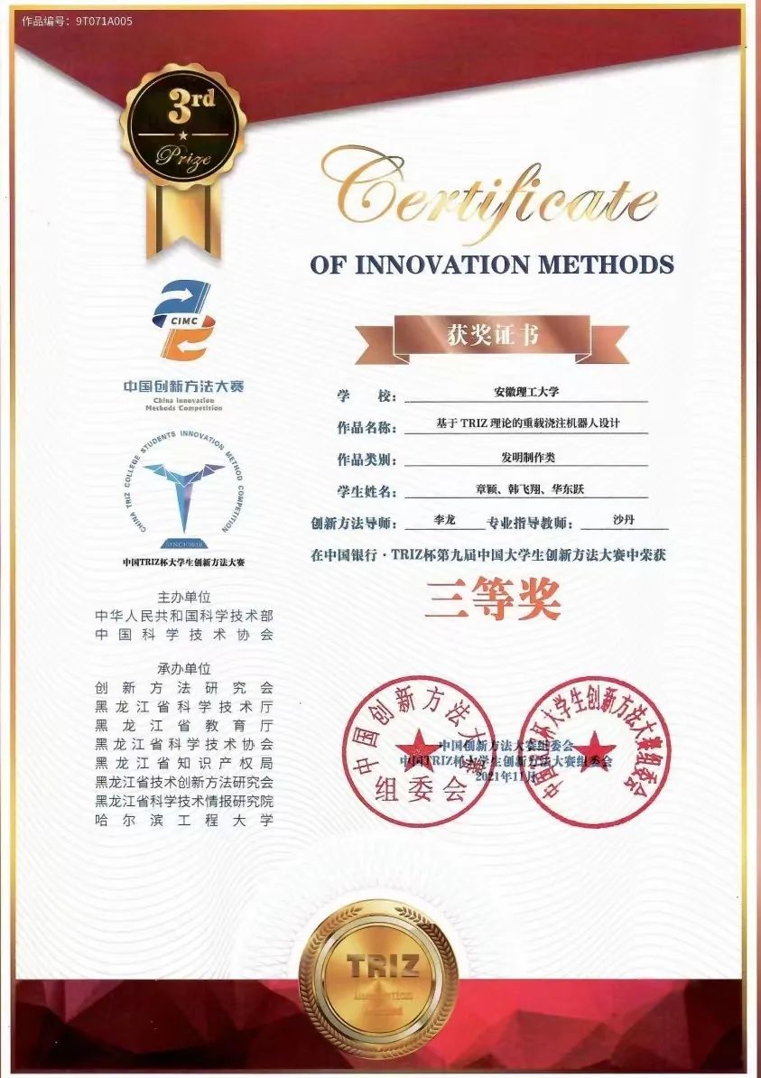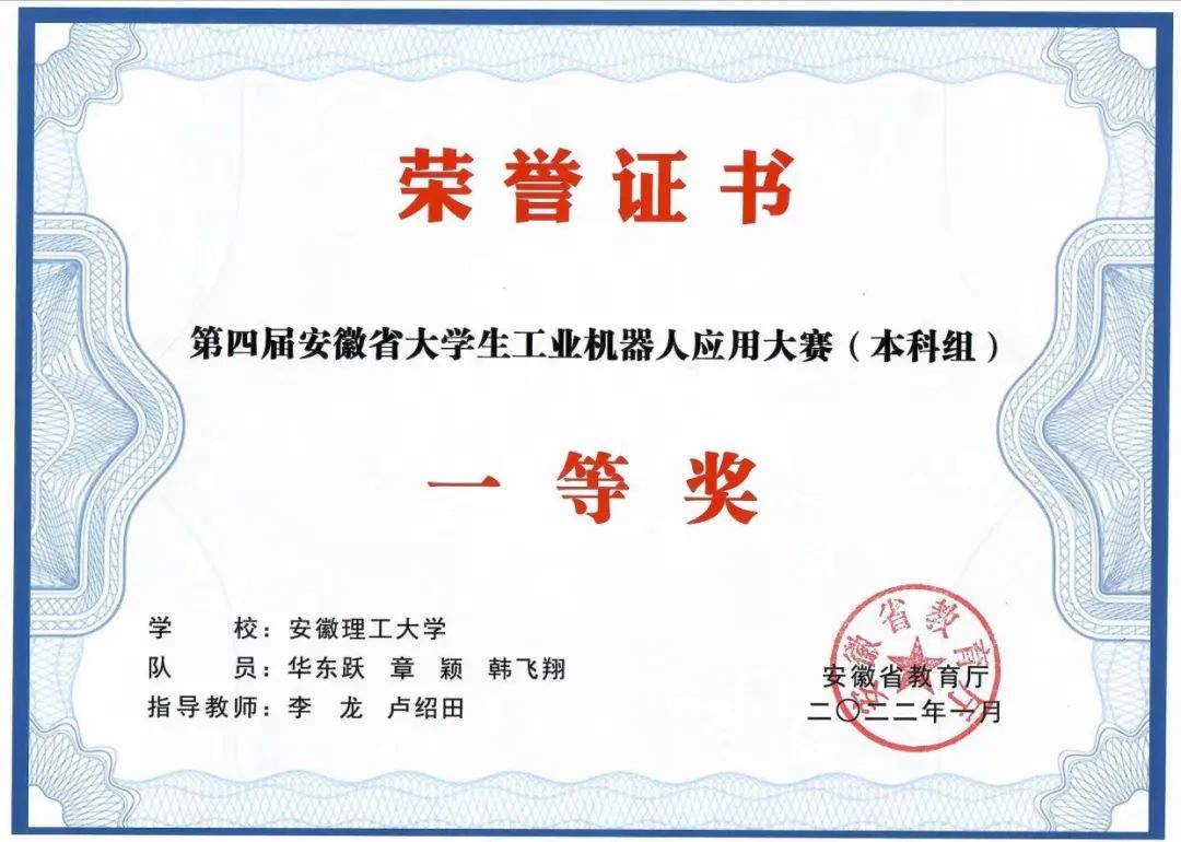 韩飞翔,中共党员,人工智能学院机器人工程专业2019级本科生,现已成功推免至中国科学院大学西安光学精密机械研究所继续深造。大学期间,绩点排名名列前茅,前三年平均绩点高达4.19。2021年9月,他在全国大学生数学建模竞赛中获得省级一等奖,同年11月在TRIZ杯第九届中国大学生创新方法大赛中获得国家级三等奖。次年一月,他在第四届安徽省大学生工业机器人应用大赛中获得省级一等奖。