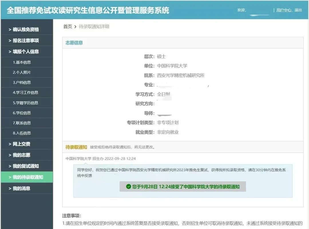 最终,像他所坚信的那样,22年7月份,他成功拿到了中科院和安徽大学的优秀营员,并于九月份获得学校的保研名额,成功推免保送到中国科学院大学。