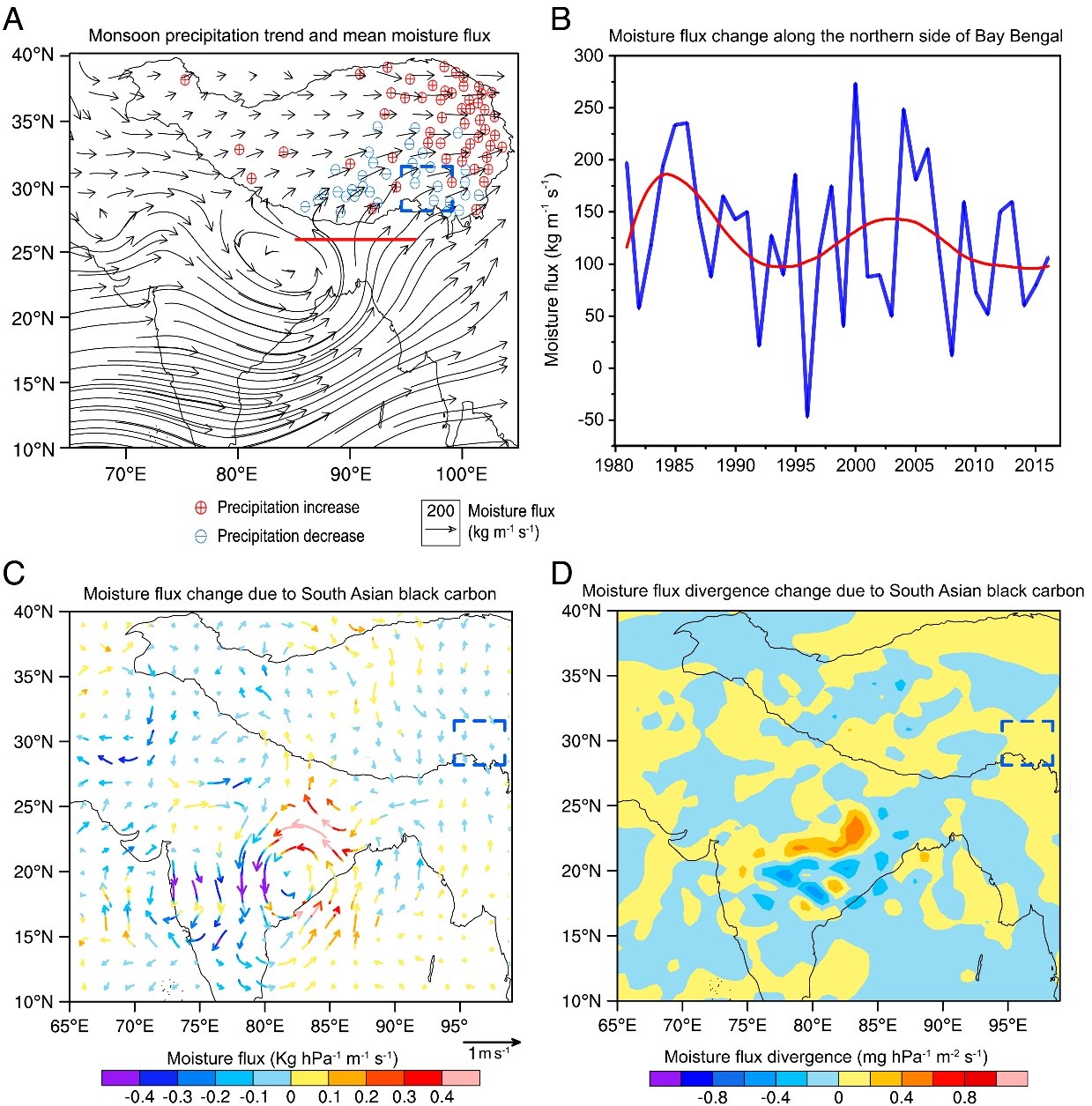 图1季风降水趋势与水汽通量变化