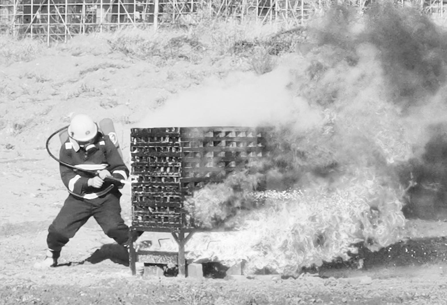 图为消防队员进行灭火演示(安理大安全学院供图)。