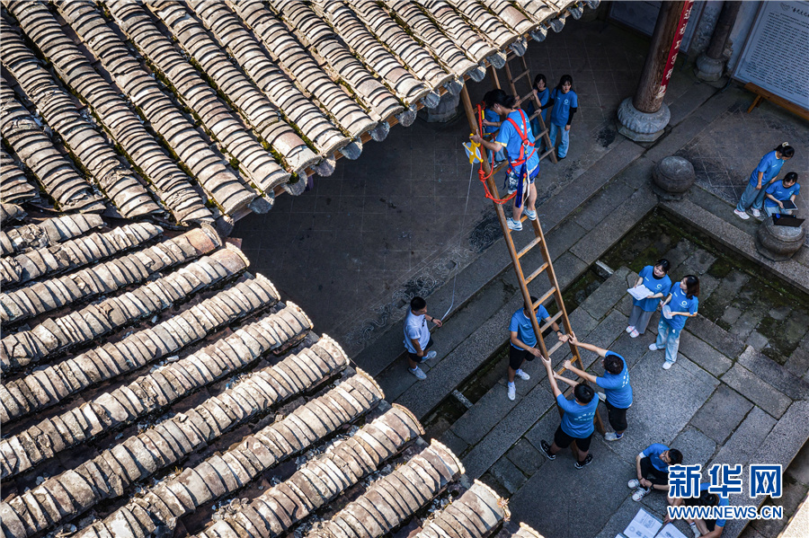 据了解,安徽理工大学“倾筑”服务团共75名学生参与此次古建筑数字化测绘活动。分别对查济的宝公祠、洪公祠、德公厅、镏公厅屋、二甲祠、古民居进行了测绘与模型搭建。同时,“倾筑”服务团还深入查济古村落开展古建筑口述史调研活动,让古建筑真正的成为活文物。新华网发(刘玉才 摄)