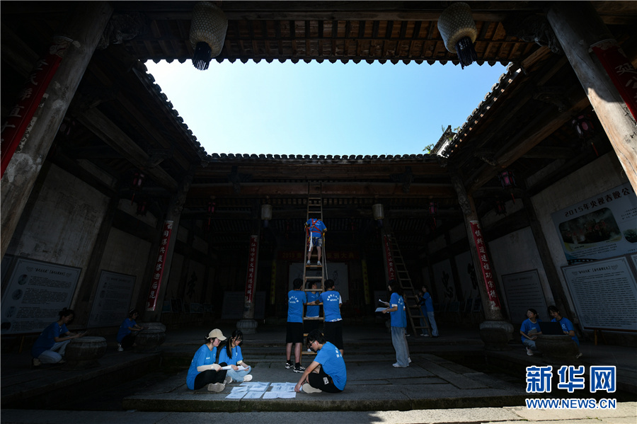7月15日,绿树掩映下的安徽皖南查济古镇里,一群身着蓝色文化衫的学生们,在白墙灰瓦的徽州古建筑里穿梭着。他们用手里的仪器,测量古祠堂的每一个角落,用手里的笔,记录下每一块精雕细刻的木雕。