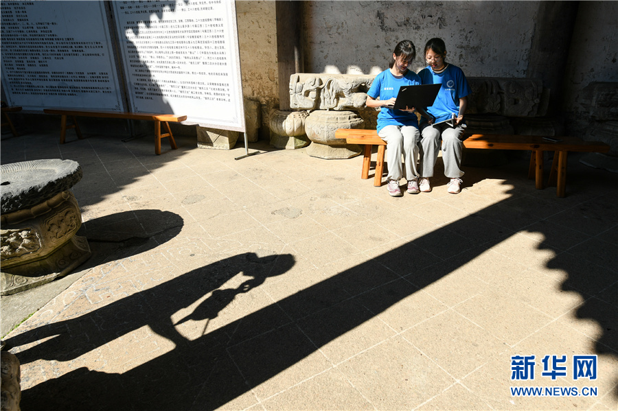7月15日,服务团的学生用电脑收集古建筑图像数据。