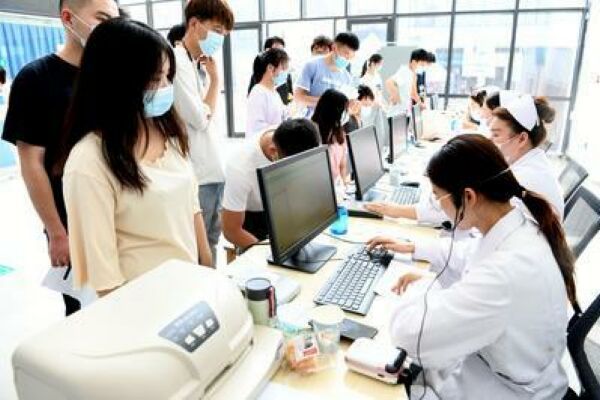 安徽理工大学第一附属医院医务人员为安徽理工大学大学生进行疫苗接种登记