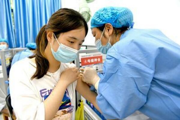 近日,安徽理工大学第一附属医院医务人员为安徽理工大学大学生接种重组新型冠状病毒疫苗。淮南市在完成第一阶段重点人群疫苗接种工作后,大规模疫苗接种工作规范、有序推进。