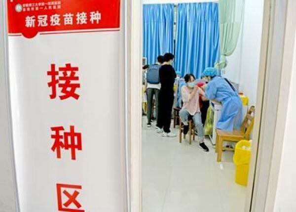 安徽理工大学接种疫苗后的大学生在留观区内留观30分钟