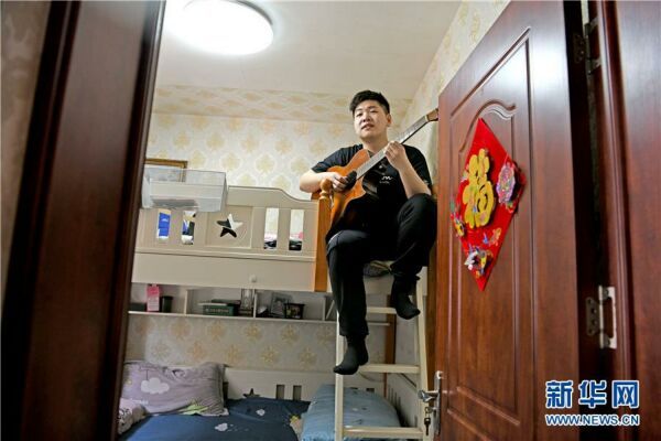 5月9日,安徽理工大学第一附属医院“00后”男护士段青龙休息时间在家通过音乐放松自我。