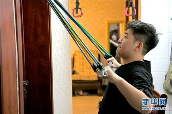5月9日,安徽理工大学第一附属医院“00后”男护士段青龙休息在家锻炼身体,他觉得干好护士工作一定要有一个好身体。
