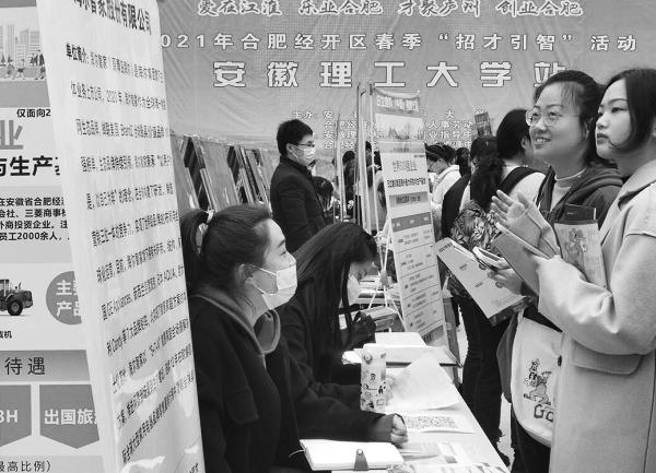 近日,安徽理工大学2021届毕业生春季校园招聘活动正式拉开序幕。三月以来,中交第二航务工程局有限公司、合肥新站高新区、南京溧水区人社局等大型国企、央企、地市人才机构相继在该校举办线下专场招聘会,700余名毕业生与用单位达成就业意向,147名同学现场与用人单位签订就业协议,线下就业市场呈现供需两旺局面。
