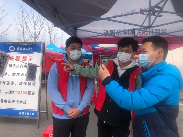 “请测量体温,出示健康码”“同学你好,请打开今日校园,验证入校许可。”按照安徽理工大学春季学期学生返校工作方案,3月3日至5日,安徽理工大学2021年春季学期学生错峰开学。经过一个假期的休整,27000余名学生背着行囊,怀揣着对新学期的期待,开启了校园生活。