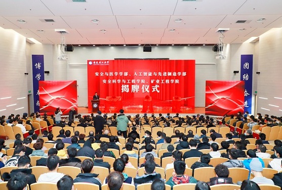 仲冬时节,安徽理工大学舜耕会堂学者云集,高朋满座,暖意融融,气氛热烈。近日,安徽理工大学安全与医学学部、人工智能与先进制造学部、安全科学与工程学院、矿业学院揭牌仪式在此隆重举行。