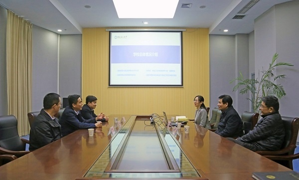 在国家重点实验室2号会议室,虞宝桃、董雨会见来宾,并同杨正一行展开座谈。虞宝桃介绍了学校的校史沿革、办学特色、学科建设、人才培养、科技创新、国际交流及远景规划等情况。双方围绕人才培养、就业创业、团学改革、第二课堂成绩单制度实施等工作展开交流。